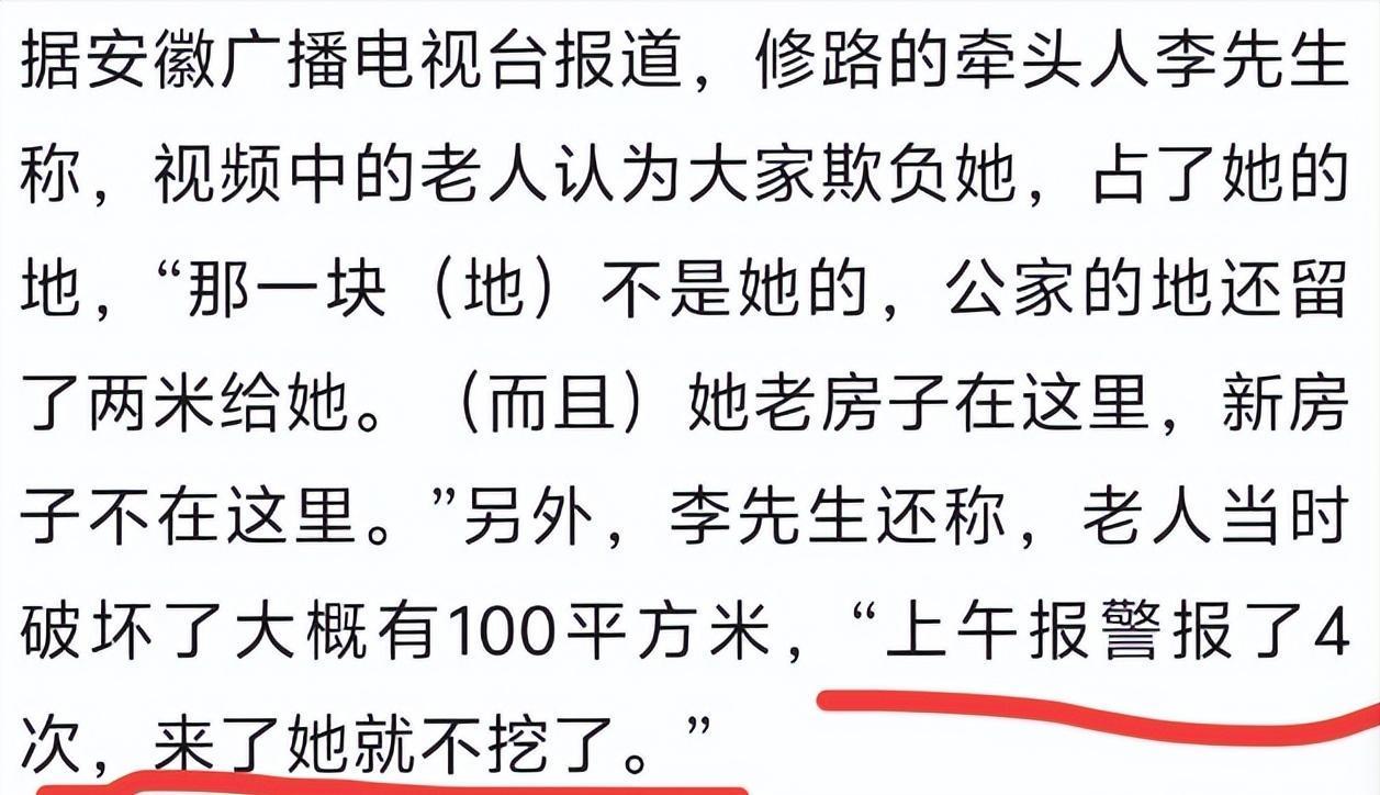 挖路的是位80岁的张老太,佝偻着背却抡锄有力,三个小时把百余平方米新路凿成“蜂窝煤”,最深的坑能塞进成年人的脚。